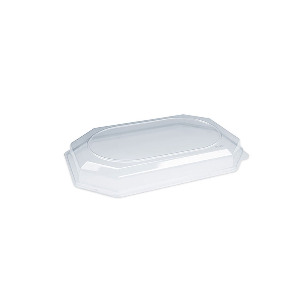 Der Domdeckel aus rPET (recyceltem PET) klar ist die ideale Lösung für die hygienische und sichere Abdeckung von Catering-Platten. Hergestellt aus hochwertigem, umweltfreundlichem rPET, schützt der Deckel die Speisen vor Staub, Schmutz und äußeren Einflüssen, während er gleichzeitig die Frische bewahrt. Der klare Domdeckel ermöglicht eine gute Sicht auf die Speisen und ist robust genug, um während des Transports oder bei der Präsentation stabil zu bleiben. Perfekt geeignet für den Einsatz bei Veranstaltungen, Feiern, im Catering oder bei Buffets. Der Deckel ist nachhaltig und unterstützt eine umweltbewusste Verpackungslösung.