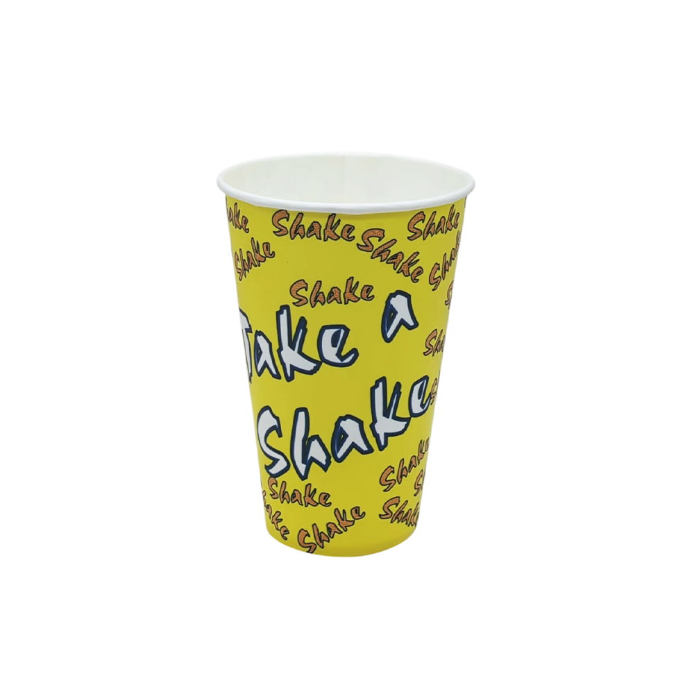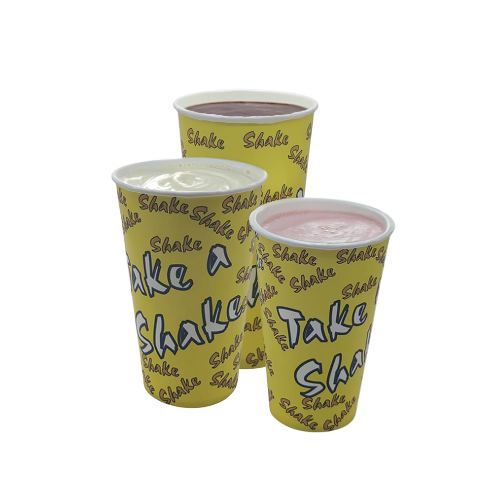 Die Shake-Pappbecher sind aus stabilem Hartpapier (PAP) mit PE-Beschichtung gefertigt und eignen sich ideal für Kaltgetränke. Erhältlich in drei Größen: