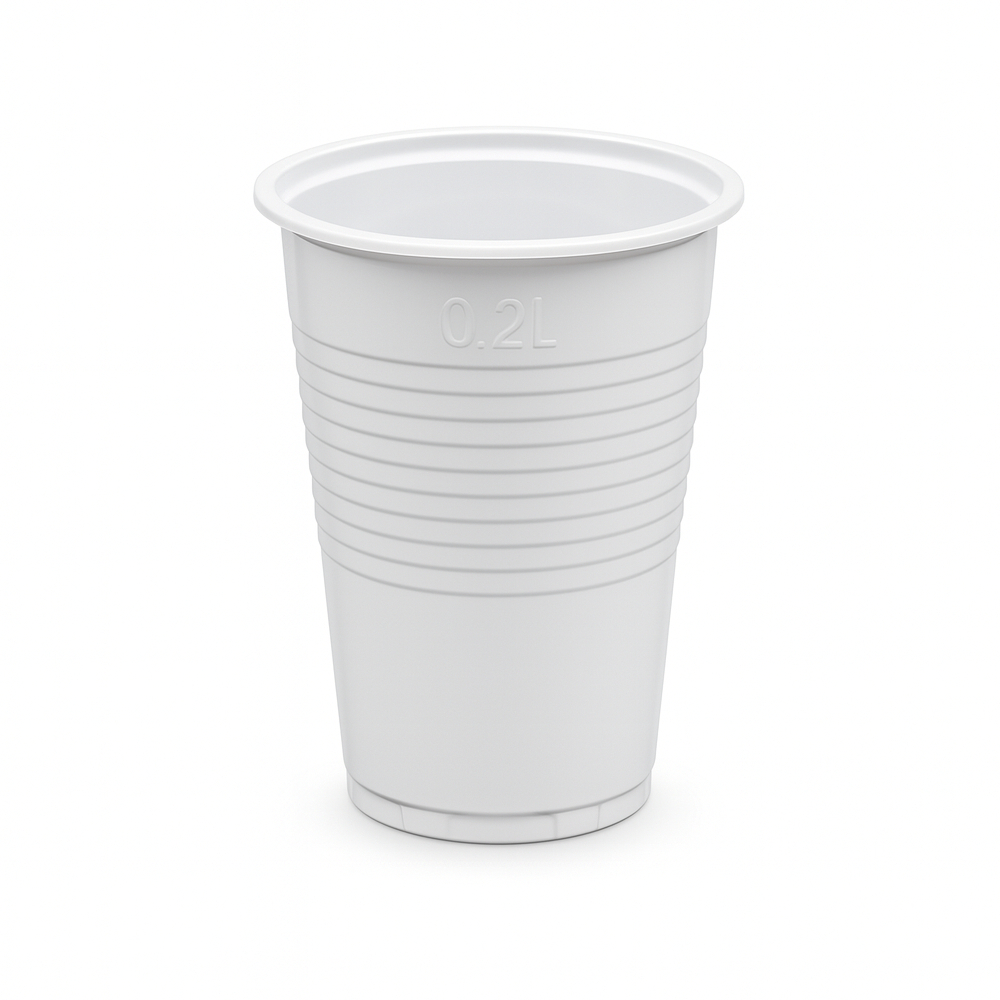 Der weiße Plastikbecher aus Polypropylen bietet ein Fassungsvermögen von 200 ml und ist vorwiegend als Einwegbecher für Kaltgetränke geeignet, z.B. bei Partys, Events, Straßenfesten, Grillfesten, Messen, Schulen...