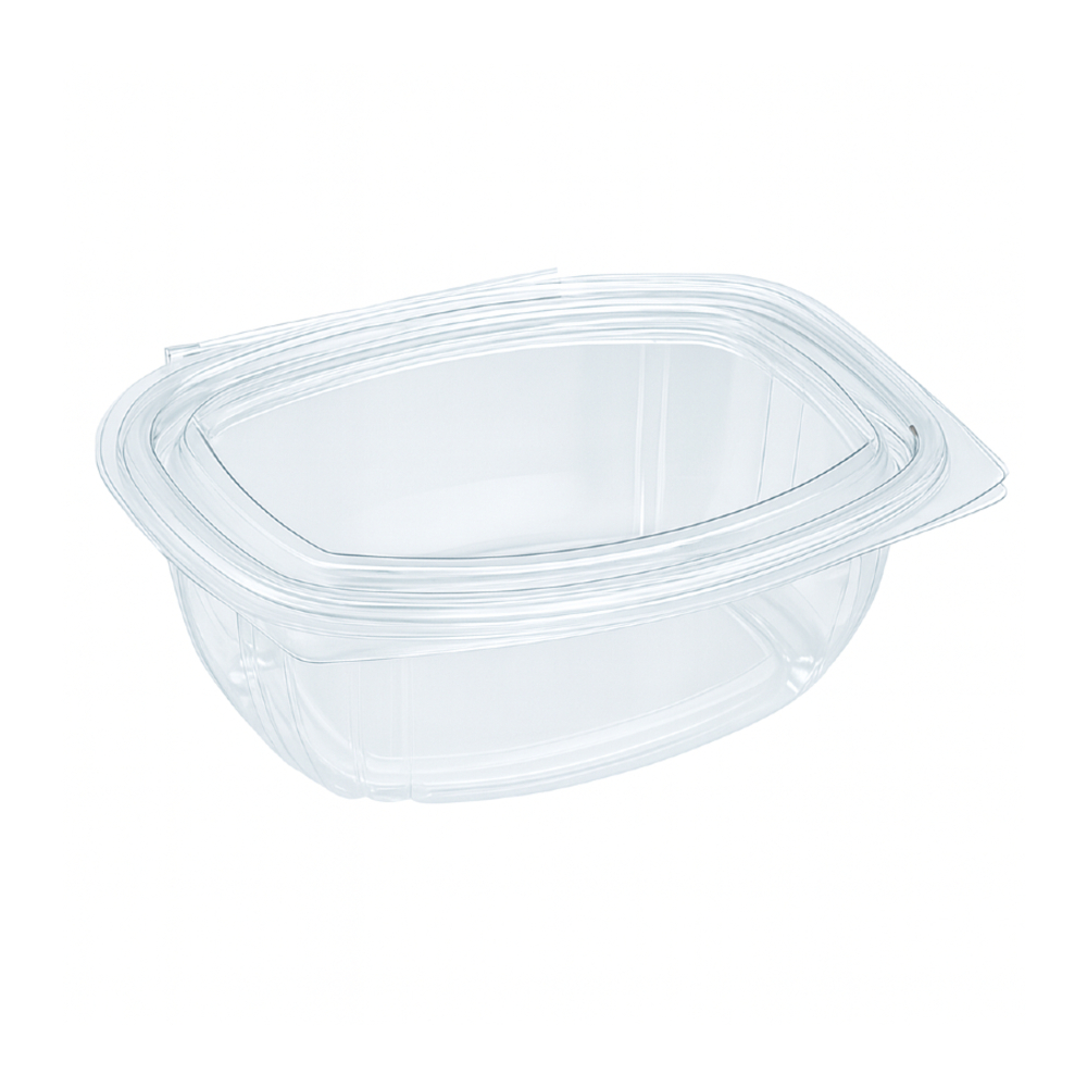 Diese Salatschalen aus PLA mit einem Fassungsvermögen von 500 ml eignen sich ideal für Salate, Snacks, Obst oder kalte Speisen. Der praktische Scharnierdeckel sorgt für eine sichere Handhabung und erleichtert den Transport, ob im Catering, Restaurant, Imbiss oder To-go-Bereich.