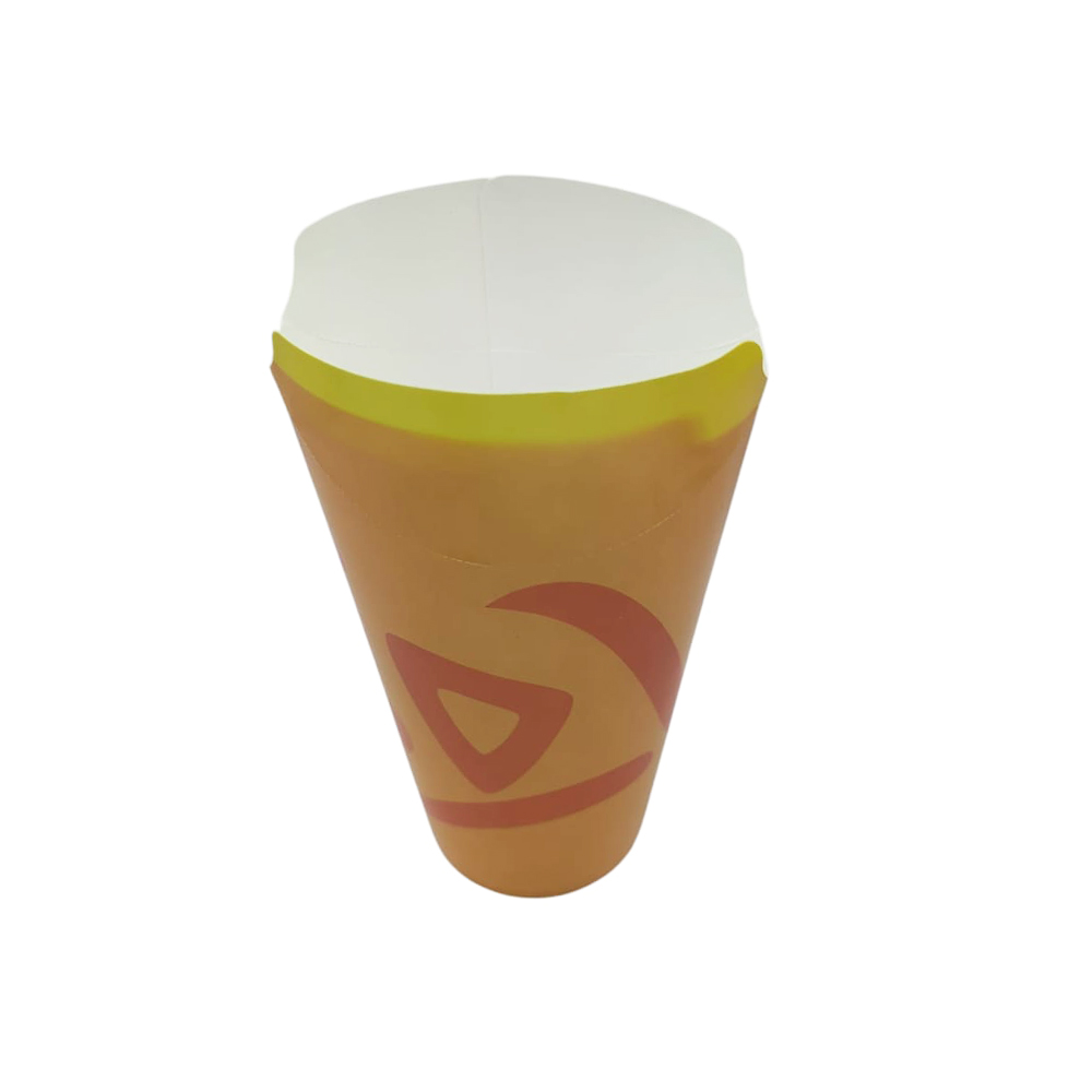 Mit den Maßen 100 x 64 x 135 mm (Durchmesser unten ca. 63 mm) bietet die Box genügend Platz und ist stabil verarbeitet. Durch die PAP/PE-Beschichtung bleibt das Material fett- und feuchtigkeitsbeständig – ideal für den Außer-Haus-Verkauf.