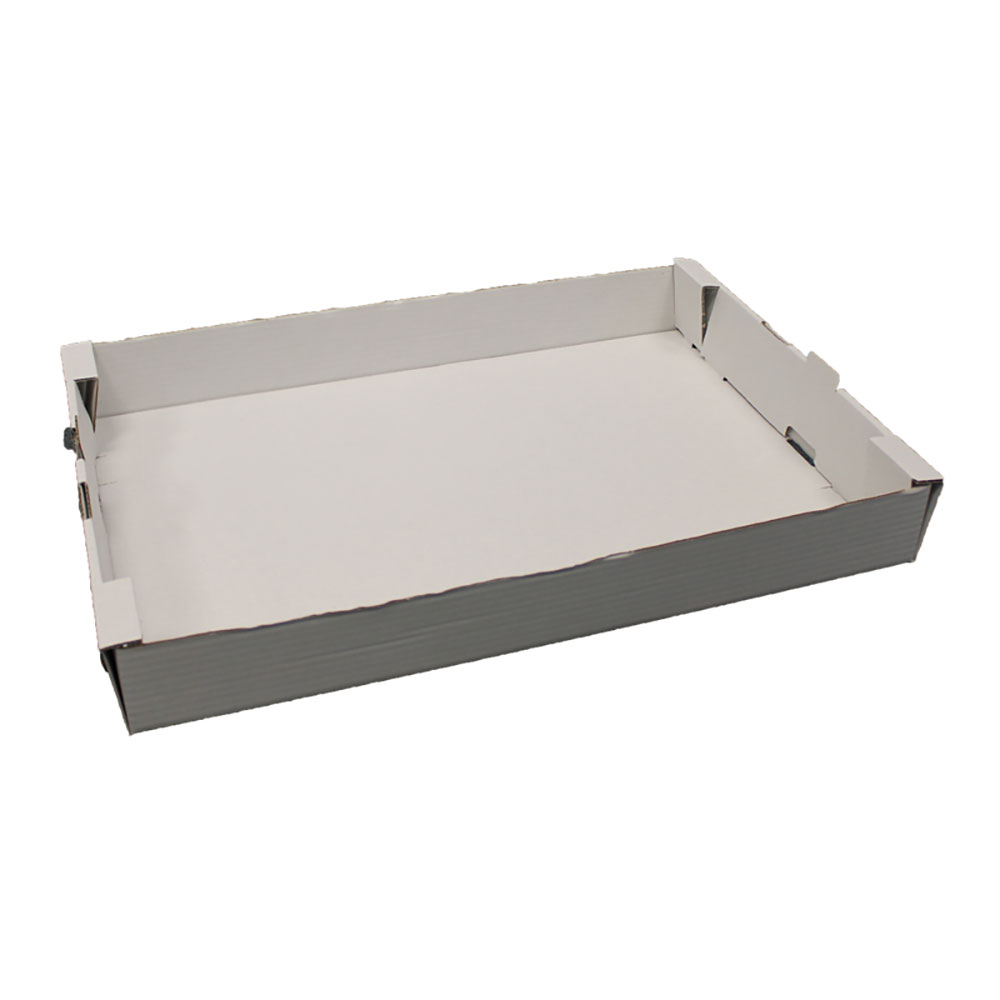 Das leichte, aber robuste Pappmaterial ist lebensmittelecht und praktisch stapelbar, wodurch die Steige optimal für den professionellen Einsatz geeignet ist.