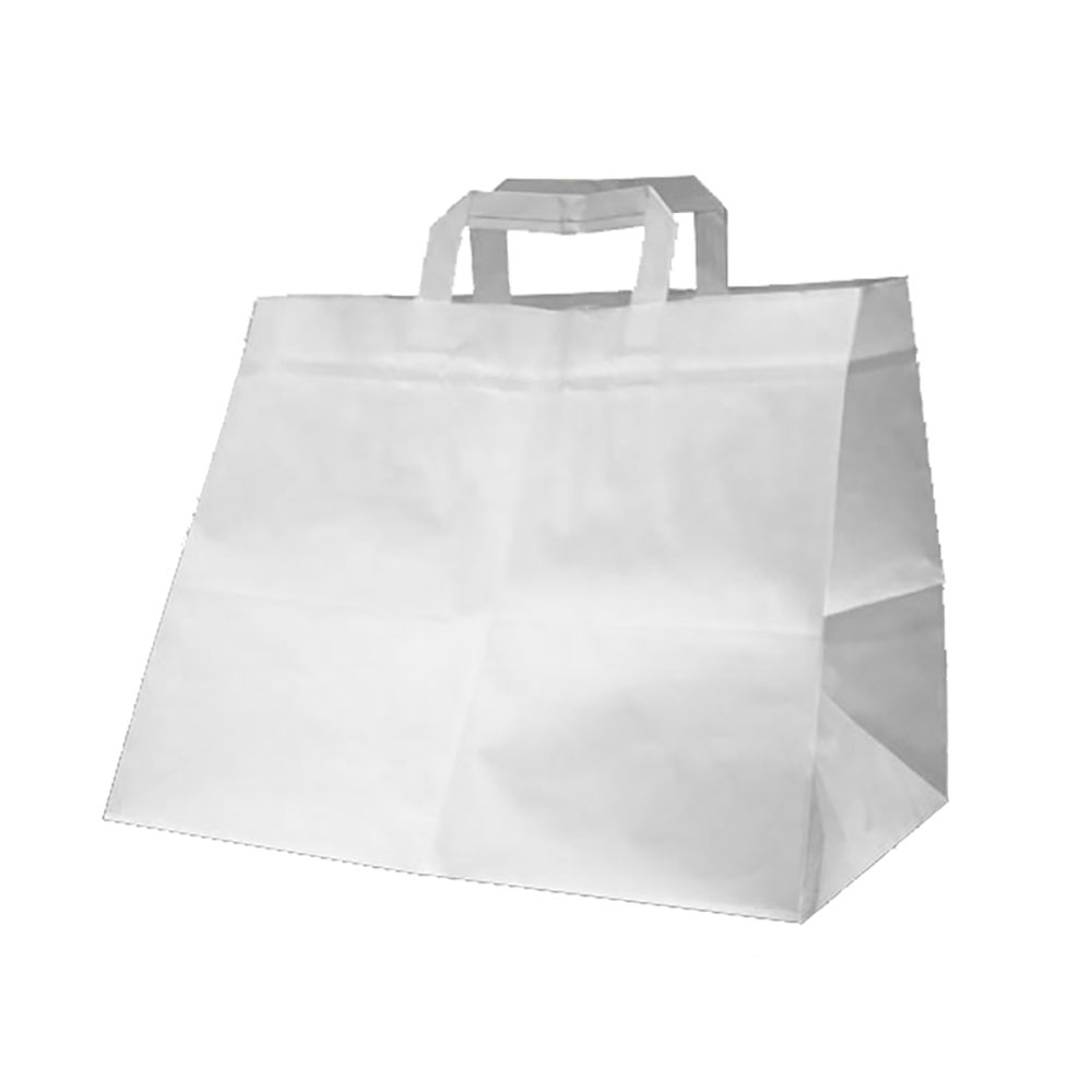 Die stabilen Papiertragetaschen in Weiß sind eine umweltfreundliche und vielseitige Verpackungslösung. Dank der robusten, geklebten Innenhenkel besitzen die Tragetaschen eine Tragfähigkeit von ca. 10 kg. Sie bestehen aus hochwertigem 80 g/qm Papier und sind damit noch belastbarer und langlebiger.