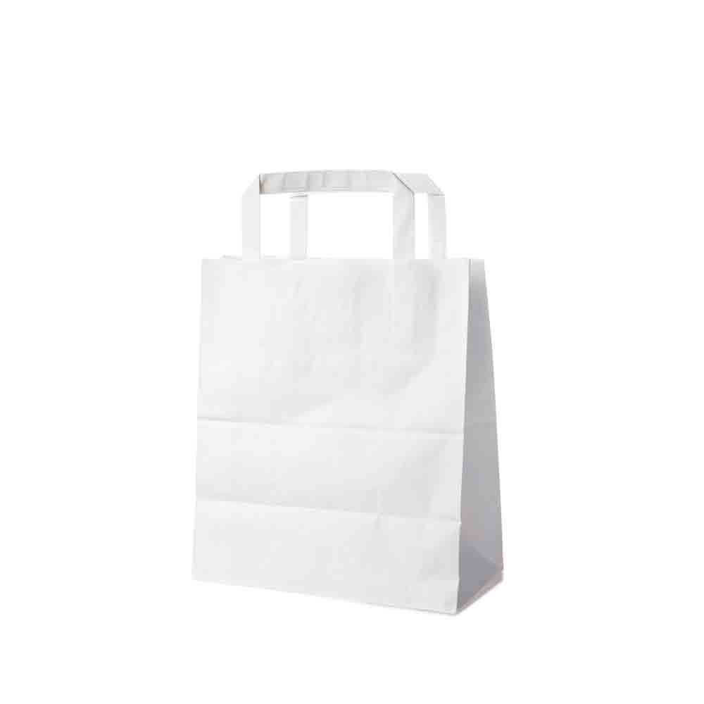 Die Papiertragetaschen in Weiß sind eine umweltfreundliche & praktische Verpackungslösung. Mit den stabilen, geklebten Innenhenkeln bieten sie eine Tragfähigkeit von ca. 10 kg. Hergestellt aus 70 g/qm Papier, sind sie robust, vielseitig und gleichzeitig umweltbewusst.